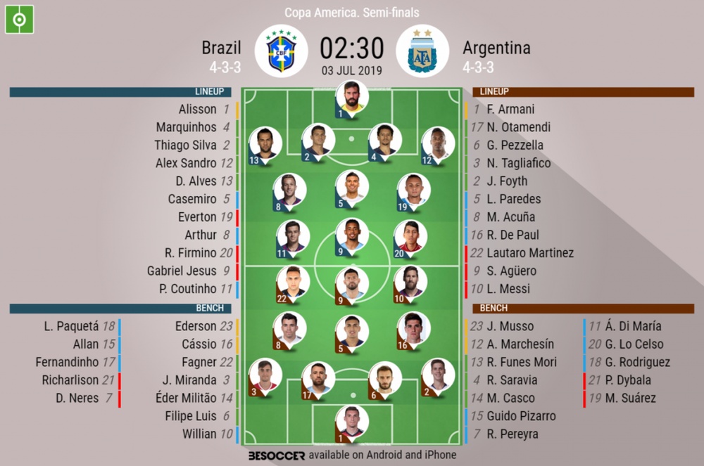 The 2021 Copa America final schedule between Argentina vs Brazil will be held on Sunday 1172021 at the Maracana Stadium. This video is the Lineup of brazil vs argentina - QF COPA AMERICA 3 July 2019BrazilvsArgentinaCOPAAMERICA2019abijeetdulalVideo is upload from 2 ChannelsLi. Head to head argentina vs brazil final copa america 2021 di 5 pertandingan akhir.