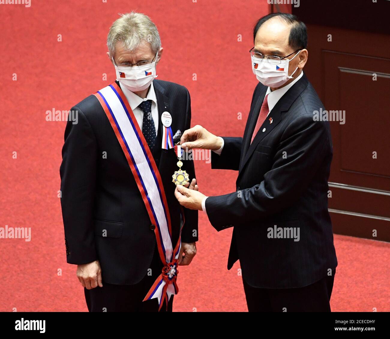 Taipei Taiwan 01st Sep 2020 I Am Taiwanese Czech Senate Chairman Milos Vystrcil Said In The Parliament Of Taiwan After He Was Decorated With A Medal For Parliamentary Diplomacy By Its Chairman Yu Shyi Kun Today On Tuesday September 1st 2020